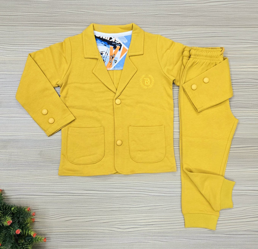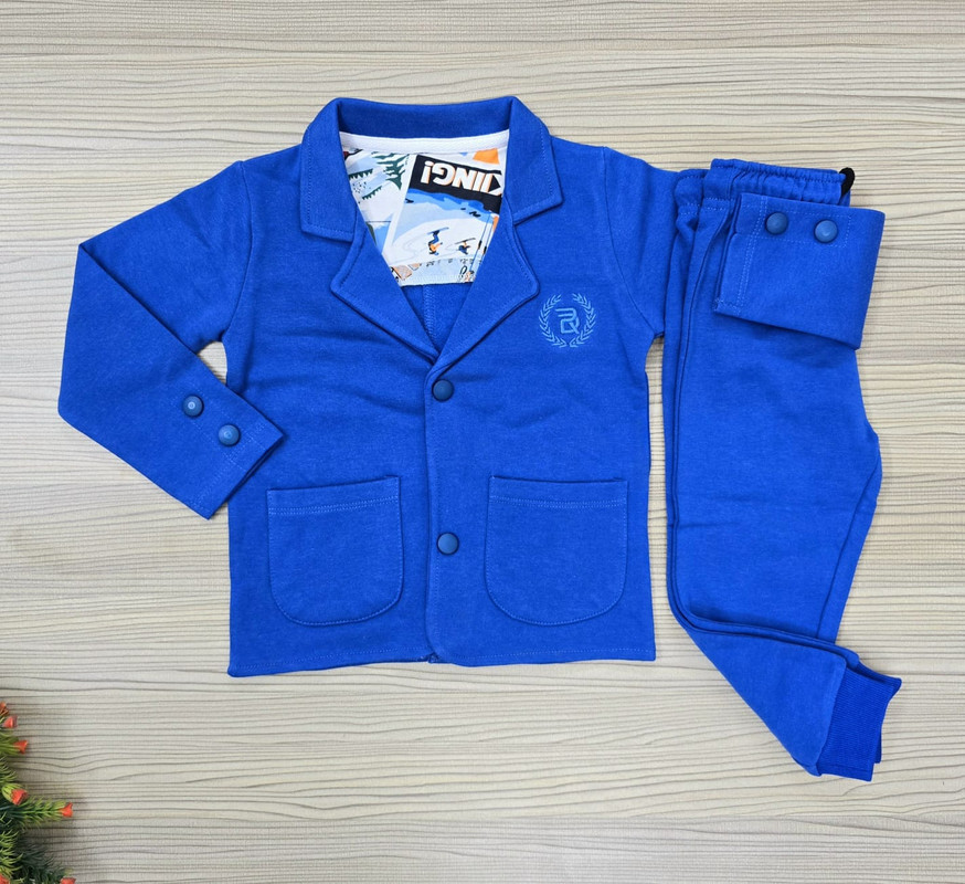 Market hit Collection Blazer Set Size- 6/9, 12/18, 18/24, 24/36 Month Ratio - 3-3-3-3= 12 pcs bilister Colour - 10 Fabric - Terry GSM - 250-300 Qty- 2200 pcs Price